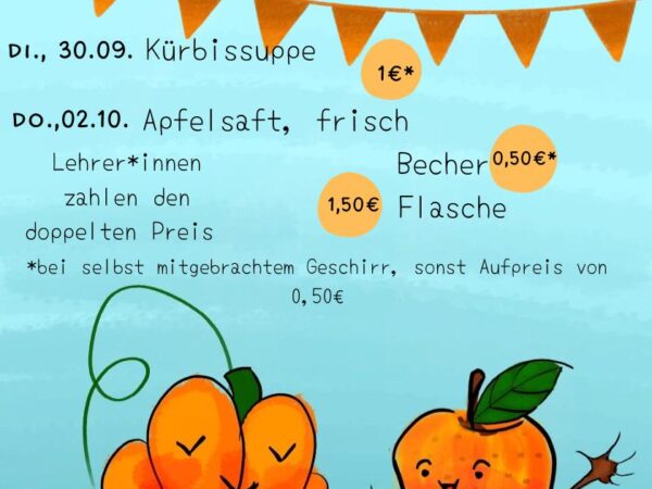Liebe Schulgemeinschaft, es ist wieder Herbst und somit Zeit für Kürbissuppe und Apfelsaft! Die Schülerinnen und Schüler der MSS werden