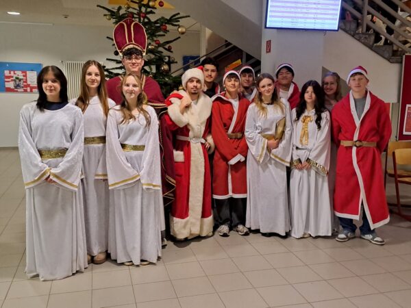Alle Schüler:innen der 5. und 6. Klassen bekamen am 5.12.2025 im Unterricht Besuch vom Nikolaus, Weihnachtsmännern und Engeln, allesamt Mitglieder