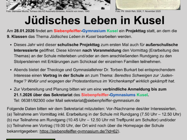 Liebe Schulgemeinschaft, liebe Freunde unserer Schule, am 28.01.2026 findet am Siebenpfeiffer-Gymnasium Kusel der 2. Siebenpfeiffer-Tag statt. Dieses ist ein Projekttag,