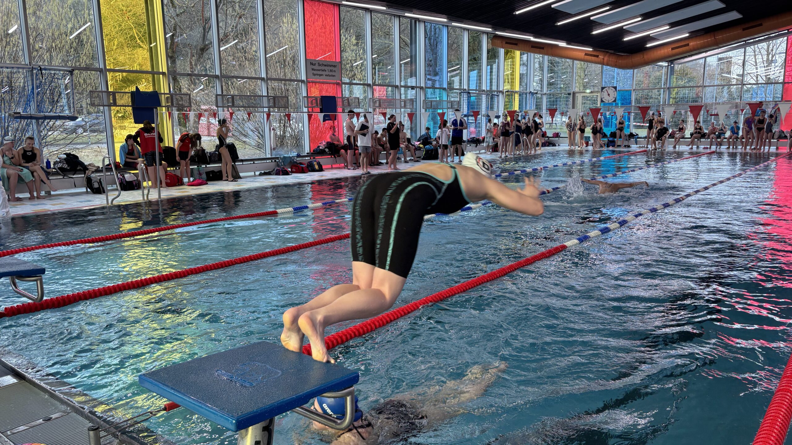 Unsere Schule ging mit zwei Mannschaften an den Start: einer U20-Jungenmannschaft sowie einer U18-Mädchenmannschaft. In verschiedenen Disziplinen traten die Schwimmerinnen und Schwimmer gegen starke Konkurrenz an und überzeugten durch großen Einsatz, Teamgeist und sehr gute Leistungen. Auf dem Programm standen sowohl unterschiedliche Staffeln als auch anspruchsvolle Einzeldisziplinen, darunter beispielsweise das 50-Meter-Schmetterlingsschwimmen.
