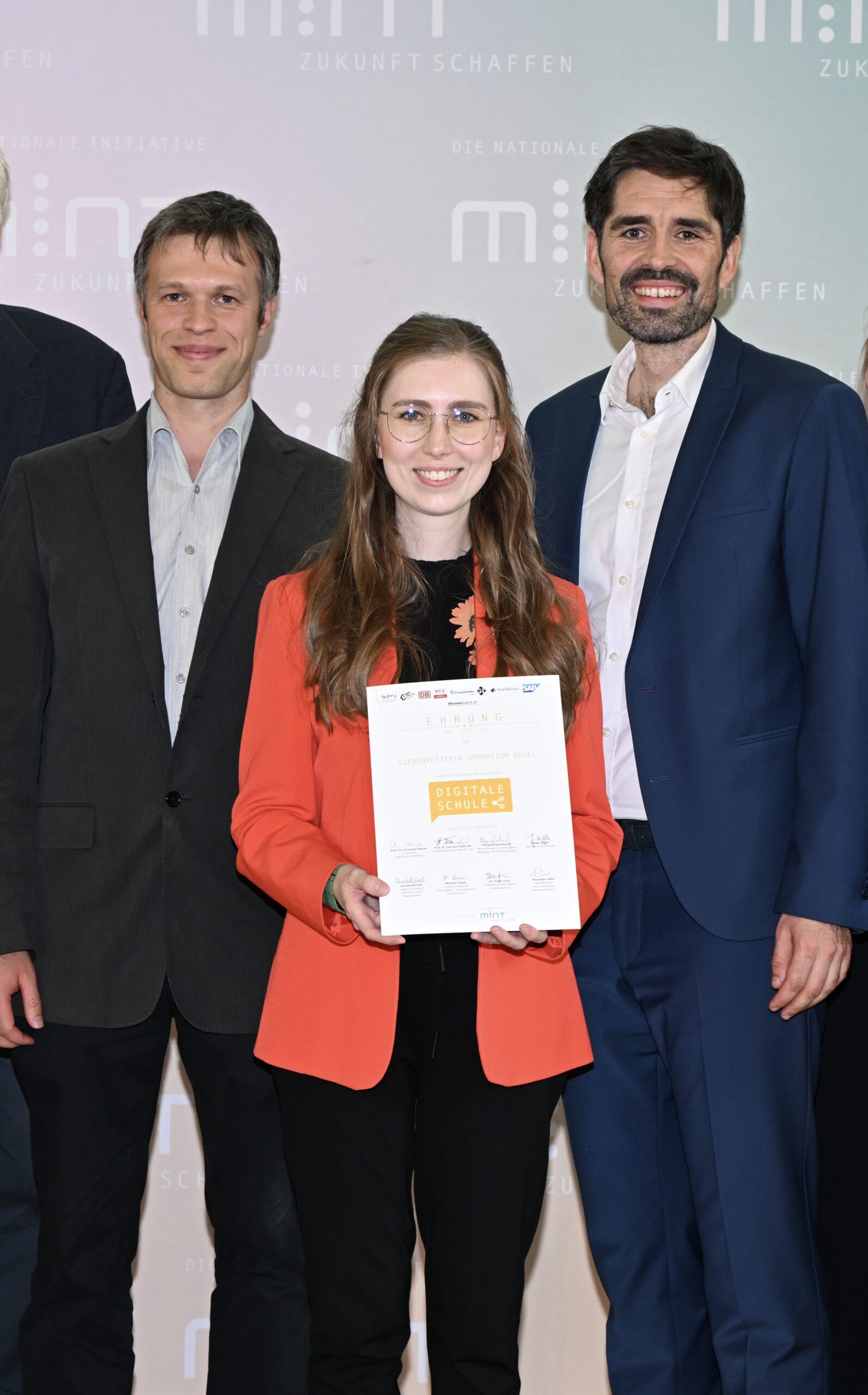 Am 2. Oktober 2025 wurde das Siebenpfeiffer-Gymnasium Kusel bereits zum dritten Mal (2019, 2022, 2025) mit dem Titel „Digitale Schule“ geehrt. Mit dieser Auszeichnung würdigt das Land Rheinland-Pfalz Schulen, die sich in besonderem Maße für eine fortschrittliche digitale Ausstattung engagieren. Die erneute Ehrung bestätigt das kontinuierliche Engagement des SGK digitale Bildung nachhaltig zu fördern und den Schülerinnen und Schülern einen zukunftsorientierten Unterricht zu ermöglichen. Stellvertretend für das SGK nahmen Herr Markus und Frau Ultes die Urkunde entgegen. Glückwünsche gab es unter anderem vom Geschäftsführer der Initiative MINT Zukunft schaffen, Benjamin Gesing sowie vom Bildungsminister Sven Teuber.